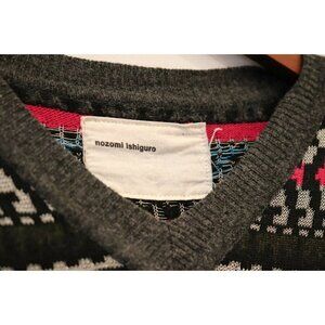 Nozomi Ishiguro Men's Medium Gray Pullover Sweater Japanese Knit Striped Jumper