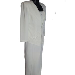 Nu Mode White Formal Bridal Two-Piece Sleeveless Dress Suit 7/8