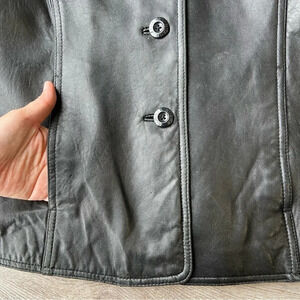 Great preowned condition- light sign of wear on sleeve cuffs and the edges of the jacket; a small scuff near the hem area (shown in the third to last pic); a tiny tear as shown in the last two pics; no other visible flaws