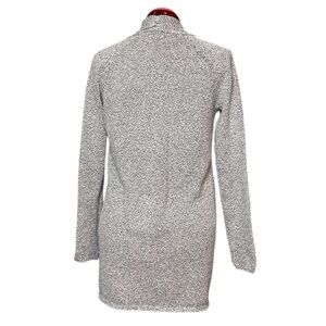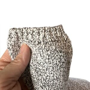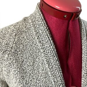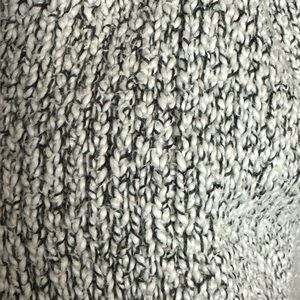 Nubbly knit white + black raglan sleeve open front cardigan two pockets
