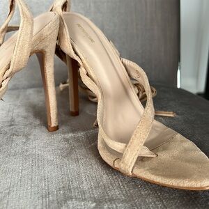 📌nude cross ankle straps with a stiletto heel and a toe loop design
