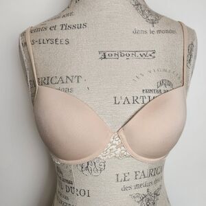 Classic Nude Push-up Underwire Tshirt Bra with Sheer Floral Lace panel detail, by Wacoal.