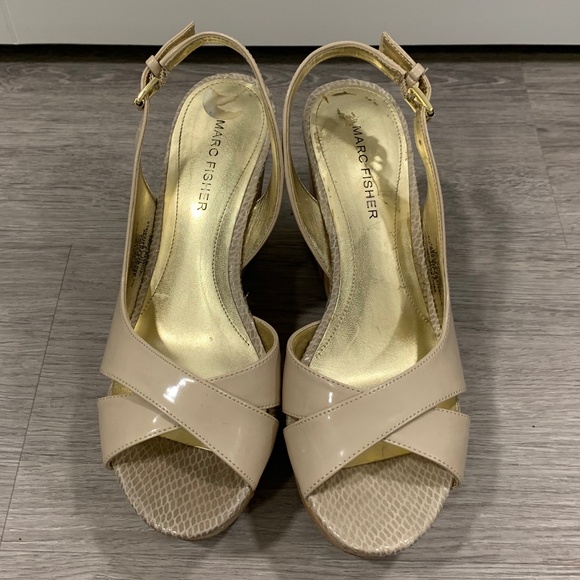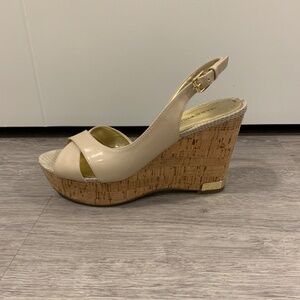 Nude Marc Fisher cork wedge heels in very good worn condition. Details: