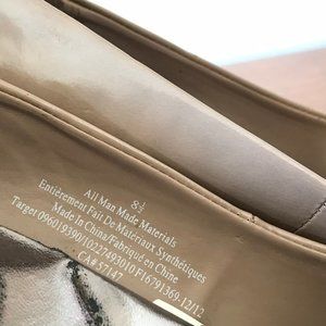 Nude Patent Faux-Leather Pumps, Size 8 1/2, 3.5"