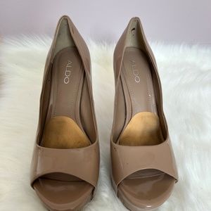 Nude peep toe Steve Aldo heels in size 39 (fit 8.5-9). Very comfortable due to the platform under the toe!!