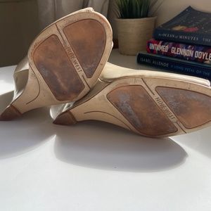 Nude Peep-Toe Nine West Patent Leather Wedges. All flaws have been shown in the photos. Women's Size 8