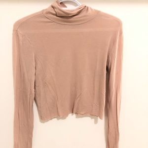 This is a nude pink turtle neck that is a little cropped and see through. It is in great condition.