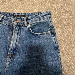 These are made out of organic denim and have a lifetime warranty. The denim is NOT very stretchy and WILL be tight when you first wear them. Don’t wash these too often either (I just washed this pair fyi so they are clean). They were well loved but they just don’t fit anymore. These will fit more like a 25 if I’m being honest but they do stretch to fit you so just be aware of that. They are machine washable but don’t wash with any whites (the dyes bleed).