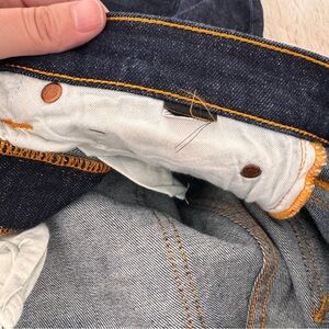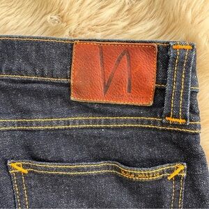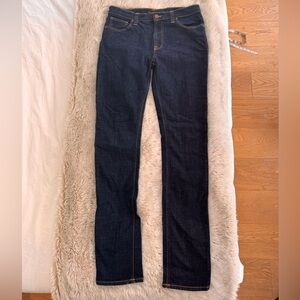 Indigo slim fit jeans. Subtle stitching detail. Versatile style.