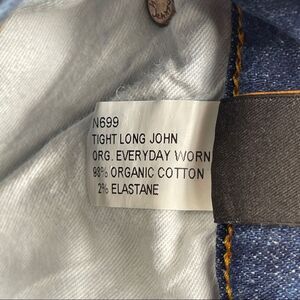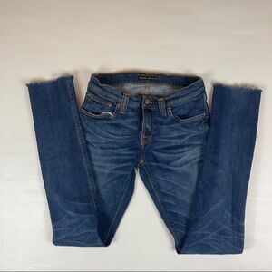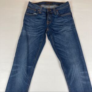 Stylish skinny jeans by Nudie Jeans. Classic blue denim with signature stitching on back pockets. Perfect for casual wear.