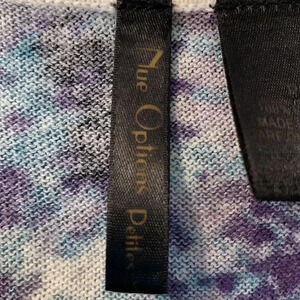 Gorgeous set in Petite Medium. Light knit with stretch. Abstract pattern in blue, purple, black and white. Black buttons.