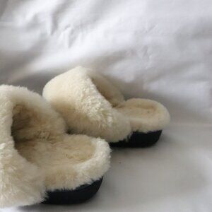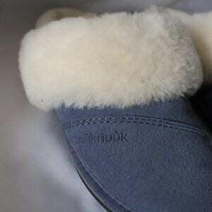 NukNuuk Womens Sz 8 Blue Leather Upper Sheepskin Slip On Indoor Light Slippers