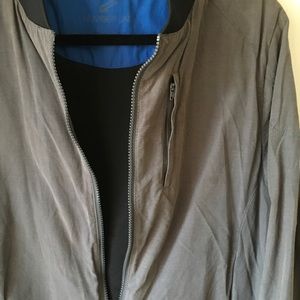 Grey with black knit wrist/waist/collar.