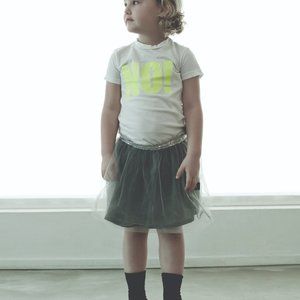 The cutest tutu skirt from nununu. A hand-dyed grey cotton skirt with a tulle skirt on top and a sequinned, paillette tape waistband.