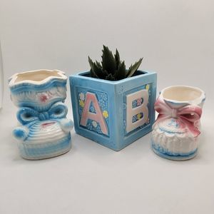 Nursery Decor Vintage Ceramic Pots Made in Japan ABC'S Baby Shoes Set 3