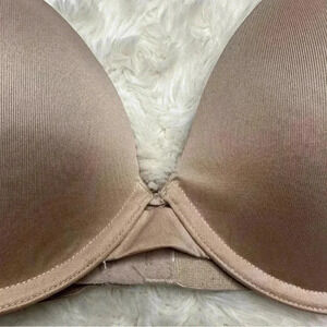 Brand and size label are missing so I am unsure of who makes it or the size. However, it measures to a 38C. Please see measurements below to ensure fit.