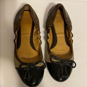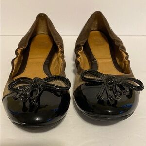 Nurture FlexibleTwo-Tone Ballet Flats Patent Leather Cap Toe Suede Bows Dainty