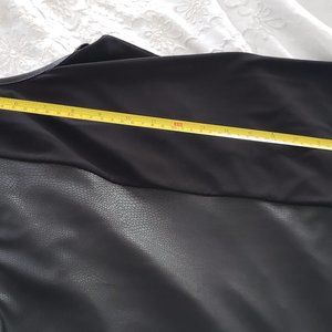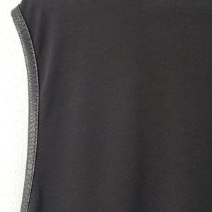 Black print knit dressy tank. Soft stretchy. Knit contrast at shoulders and across bottom. Not sheer,you can't see through it.
