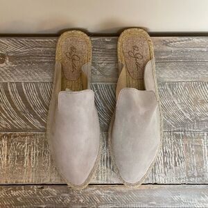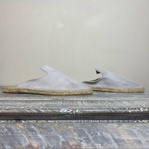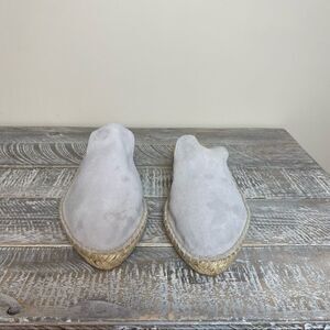 Nwob-42 Gold Bermuda Fog Grey Kid Suede Leather Espadrille Loafer Slides