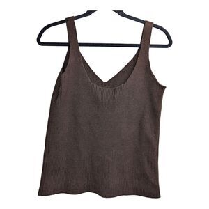 Nwot Brown knit sweater tank vest size M rib knit v neck