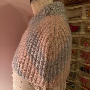 Textured Knit - Blue and Pink Striped Pattern - Straight Hemline - Rounded Neckline Materials - 69% Mohair - 20% Wool - 11% Polyamide Made in Italy