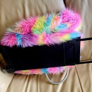 Nwot Justice Girls Fuzzy-Rainbow Rolling Bag w/ Light Up Wheels