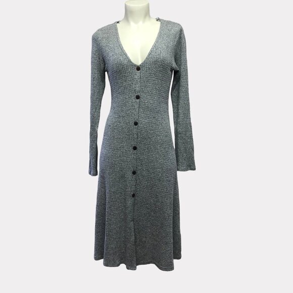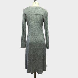 Nwot Monteau Fitted Long Sleeve Knit V Neck Midi Dress Heather Grey Size Med