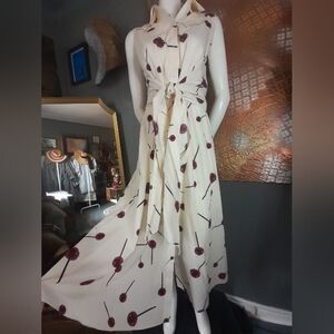 This elegant retro inspired cream and deep red lolipop print maxi dress from Zara features a tie waist and is a button down. Sleeveless with elastic waist and cutout detail at back. 100% cotton. Unique quirky and flirty print! perfect for any occasion. The dress offers a flattering fit and a stylish design. This is labeled size large but I feel like it runs a tad small so I'm listing it as a medium instead! See flat lay measurements below!