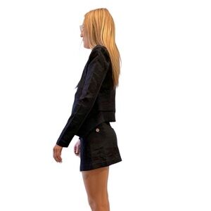 This dress suit by Anne Turtaut is such a unique and beautiful set that it’s hard to describe all its detail. Dress has an elastic back for flexibility and comfort and buttons down all the way. The blazer is super cute and has nylon on the inner arm for flexibility as well.