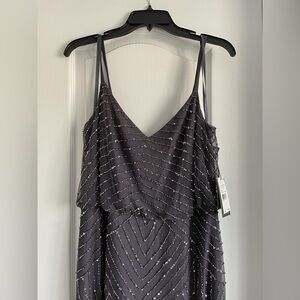 NWT Adrianna Papell Spaghetti Strap Beaded Blouson Ball Gown in Gunmetal