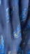 Blue flowy fabric with metallic feather details. Flutter sleeves cascade to waist. Fully lined with hidden zipper up back. Elegant, flowy, shimmery and feminine.