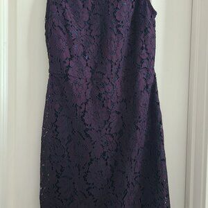 Banana Republic eggplant purple with navy detailinv Lace Sheath Dress