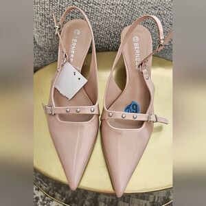 cute low boxy heel, adjustable straps, studded, nude shiny patent, new with tags