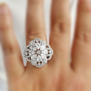 rich cz cluster ring in elaborate setting and numerous cuts of AAA quality CZ Stones
