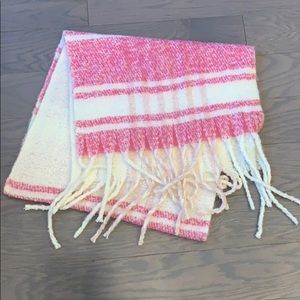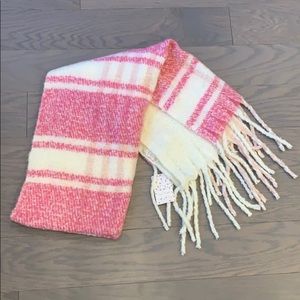 NWT Free People Gemini Plaid Pink Fringed Blanket Scarf
