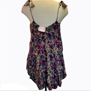 Nwt Gypsy Soul purple tan floral pleated tank top camisole size S/M