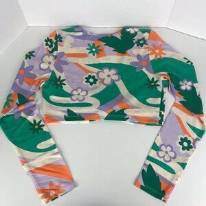 H&M Knot-detail Crop Top. Floral print in Green and Orange Color. Full Sleeve.