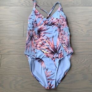 NEW Jessica Simpson Palmy Days Smocked One Piece Swimsuit