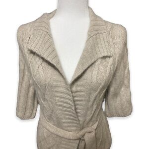 Nwt Jillian Jones Cable Knit Angora Lambs Wool Wrap Sweater Beige Women’s Size M