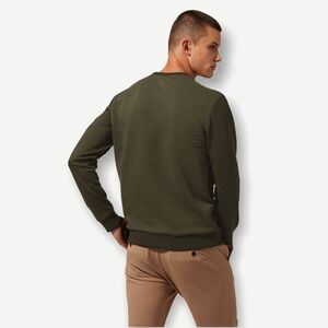 Classic crew neck with a casual-cool update thanks to technical features and a modern design that takes you everywhere you need to go. With an ottoman texture stripe panel on the back and sleek neck, hem and cuff ribbing — this knit style with a hugged fit offers a fashion fix in a versatile silhouette with ample stretch.