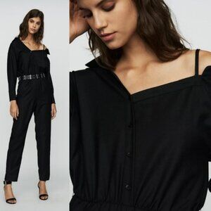 Nwt Maje Paris Jumpsuit Cold Shoulder Size 34 or XS Black Pockets Minimalist New