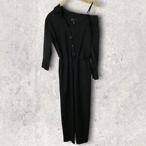 Maje Paris Cold Shoulder Jumpsuit in Black and Women's Size 34 or XS. Retails for $415 USD (approximately $577 CAD). Has pockets. Poly, wool and spandex. Brand new with tags! No flaws.