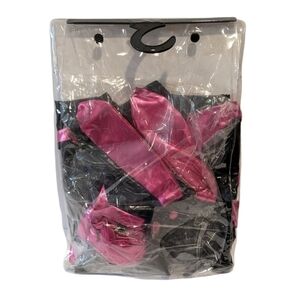 4 pc. Black and hot pink wet look dress with attached belt and bows