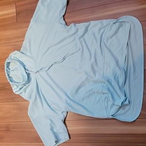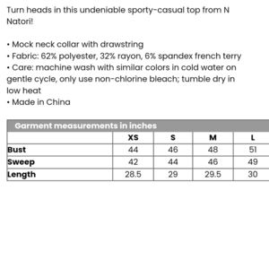 Lightweight and oversized, mock neck with drawstring, short sleeves.