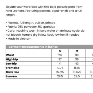 Elevate your wardrobe with this bold palazzo pant from Nina Leonard. Featuring pockets, a pull-on fit and a full length!