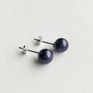 Nwt Navy Blue Shell Pearl ball stud earrings Sterling Silver 9mm