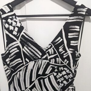 We crafted a dress from ultra-stretchy fabric for a fit that's as flattering as it is comfortable. The Moonlit Palm dress is a fit-and-flare dress with a dramatic palm print. The black and white color palette makes it versatile and easy to style for casual day-time or elegant night-time. A tie-detailing at the waist gives you an extra element of sophistication.