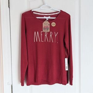 Nwt RAE DUNN red Merry pj shirt top pajama size Medium @Y