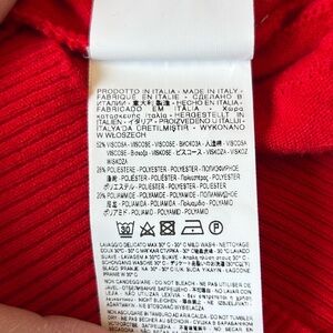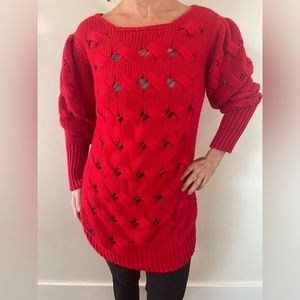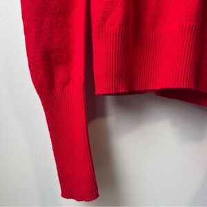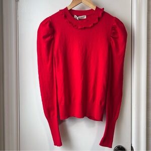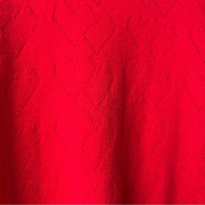 Made in Italy, Rinascimento red heart eyelet sweater. Ruffle neck, puff shoulder, fine ribbed cuffs and hem. Marked a S/M, listed as a small. Pls see below flat measurements for accurate fit.