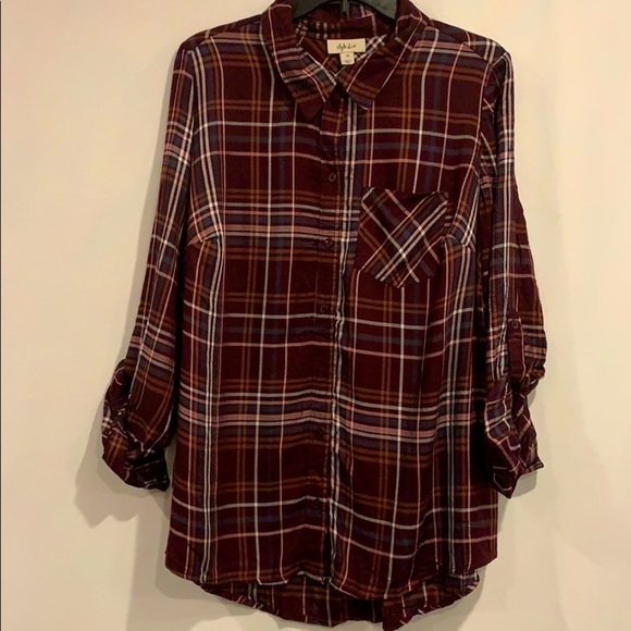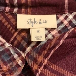 NWT Style & Co. Plaid Button Up Long Sleeve Shirt